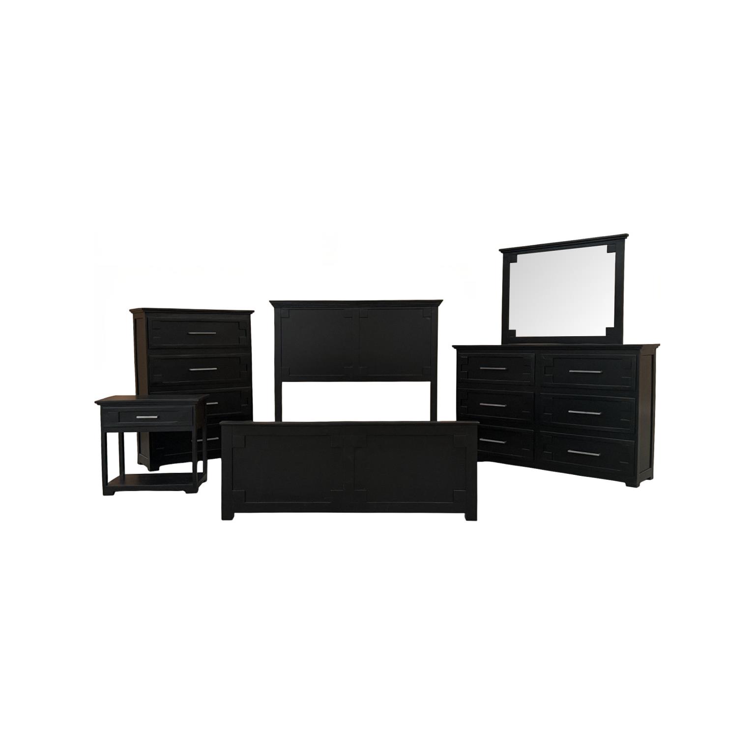 Queen Bed, Dresser, Mirror, Nightstand, Chest